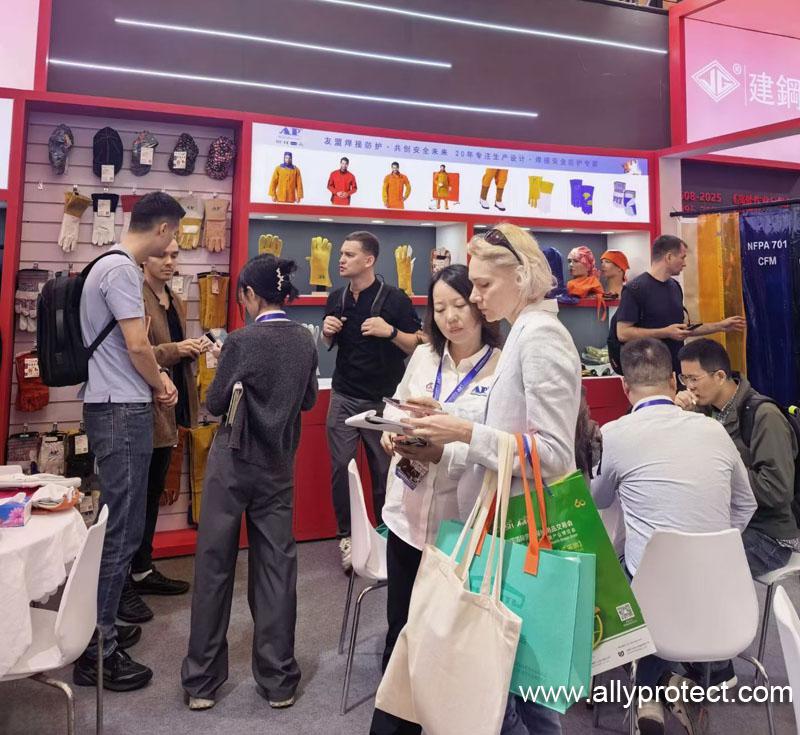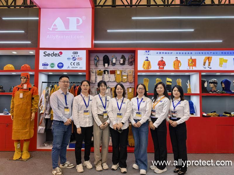 展會(huì)現(xiàn)場(chǎng),友盟防護(hù)以紅色為主色調(diào)的展位格外醒目,品牌標(biāo)識(shí)“AP(AllyProtect)”與“友盟焊接防護(hù)·共創(chuàng)安全未來(lái)”的標(biāo)語(yǔ)熠熠生輝,直觀傳遞出品牌專注焊接防護(hù)裝備研發(fā)生產(chǎn)20年的專業(yè)底蘊(yùn)。展位內(nèi),系列焊接防護(hù)手套、防火阻燃防護(hù)服、防護(hù)面罩等核心產(chǎn)品整齊陳列,從基礎(chǔ)防護(hù)裝備到高性能定制產(chǎn)品,全面覆蓋焊接作業(yè)不同場(chǎng)景的防護(hù)需求,每一件產(chǎn)品都彰顯著友盟對(duì)品質(zhì)的嚴(yán)苛把控與技術(shù)創(chuàng)新的深耕。