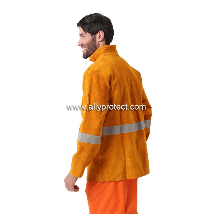 AP-2160 金黃色側開胸全皮焊服(加反光帶)